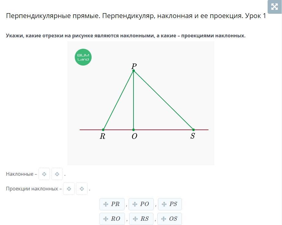 Укажи, какие отрезки на рисунке являются наклонными, а какие – проекциями наклонных.