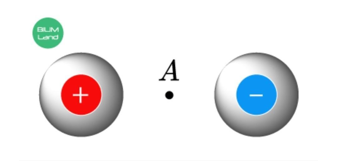 Как направлен результирующий вектор напряженности в точке A,расположенный посередине между двумя разноименно заряженными шарами?