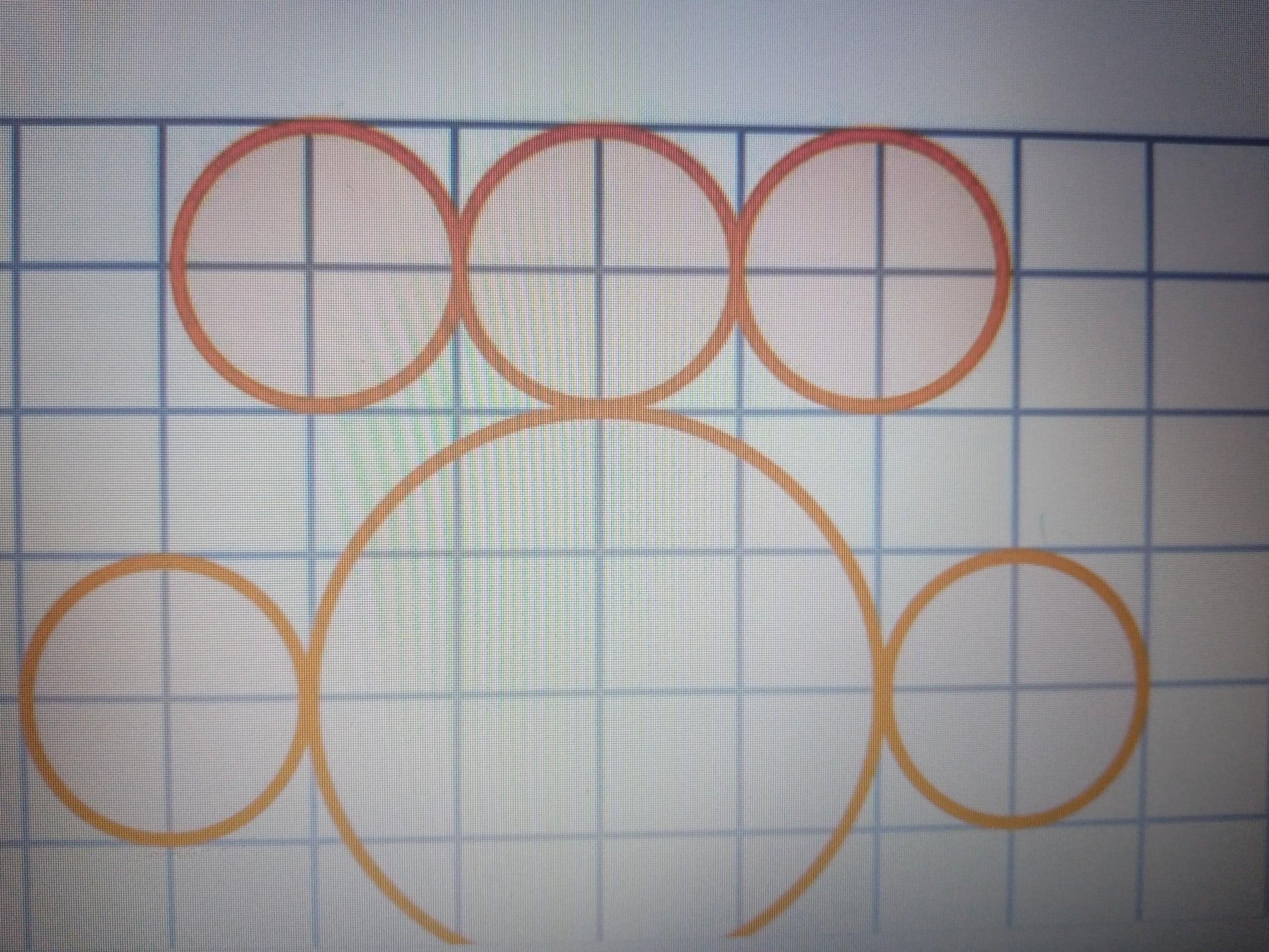 найдём площадь самого большого. его радиус равен 2, потому что от центра до конца окружности 2 клетки