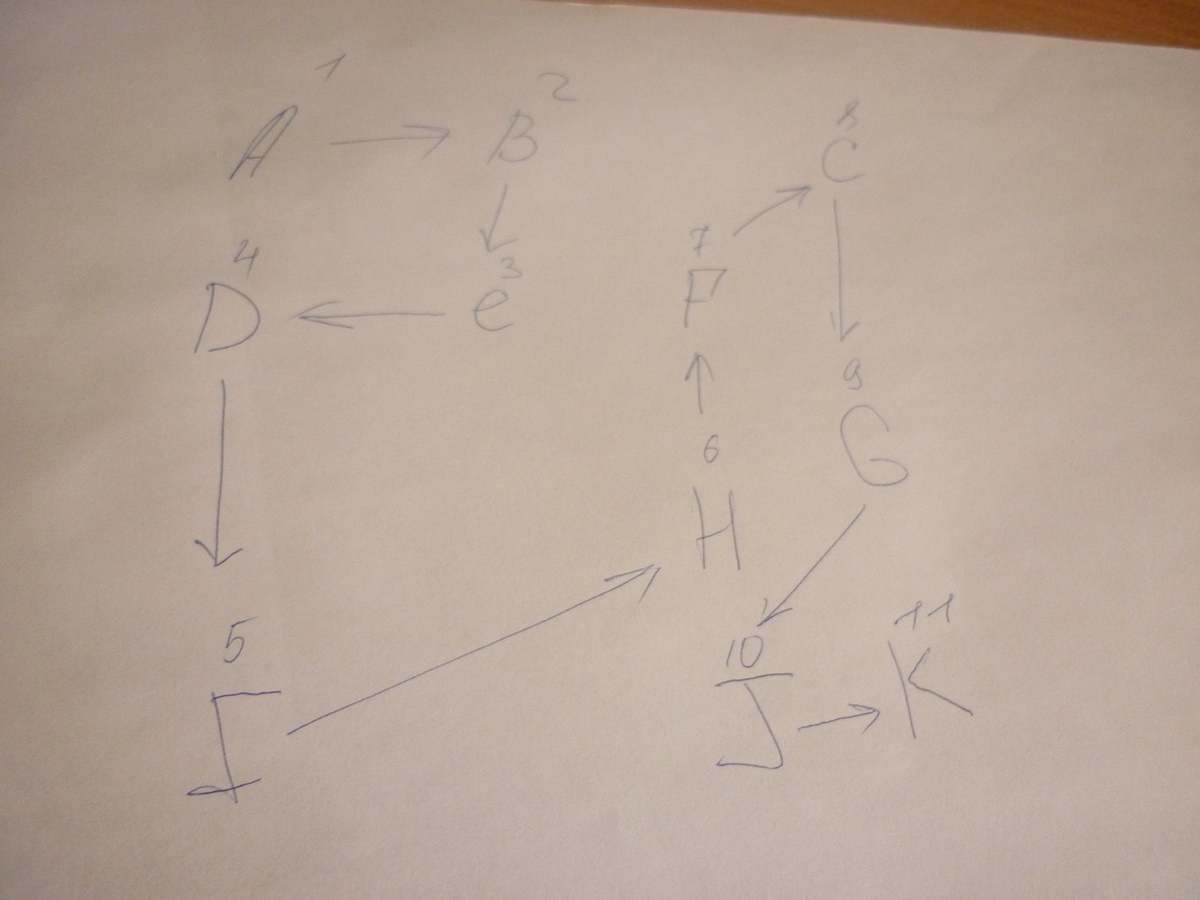 Буквы А,В,...,К на рисунке обозначают числа 1,2 ...,11 (разные буквы - разные числа) так, что суммы чисел во всех десяти отмеченных рядах из трёх клеток одинаковы. Какие значения может принимать буква I?