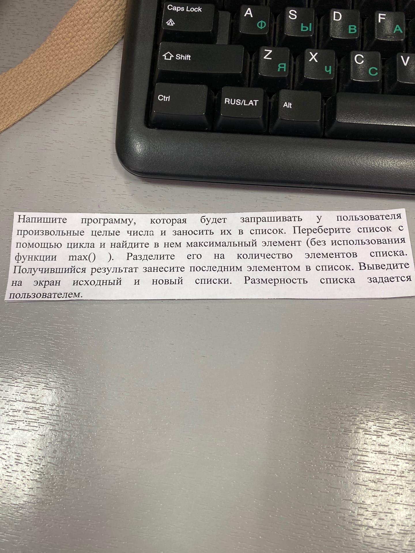 на экран исходный и новый списки. Размерность списка задается пользователем.
