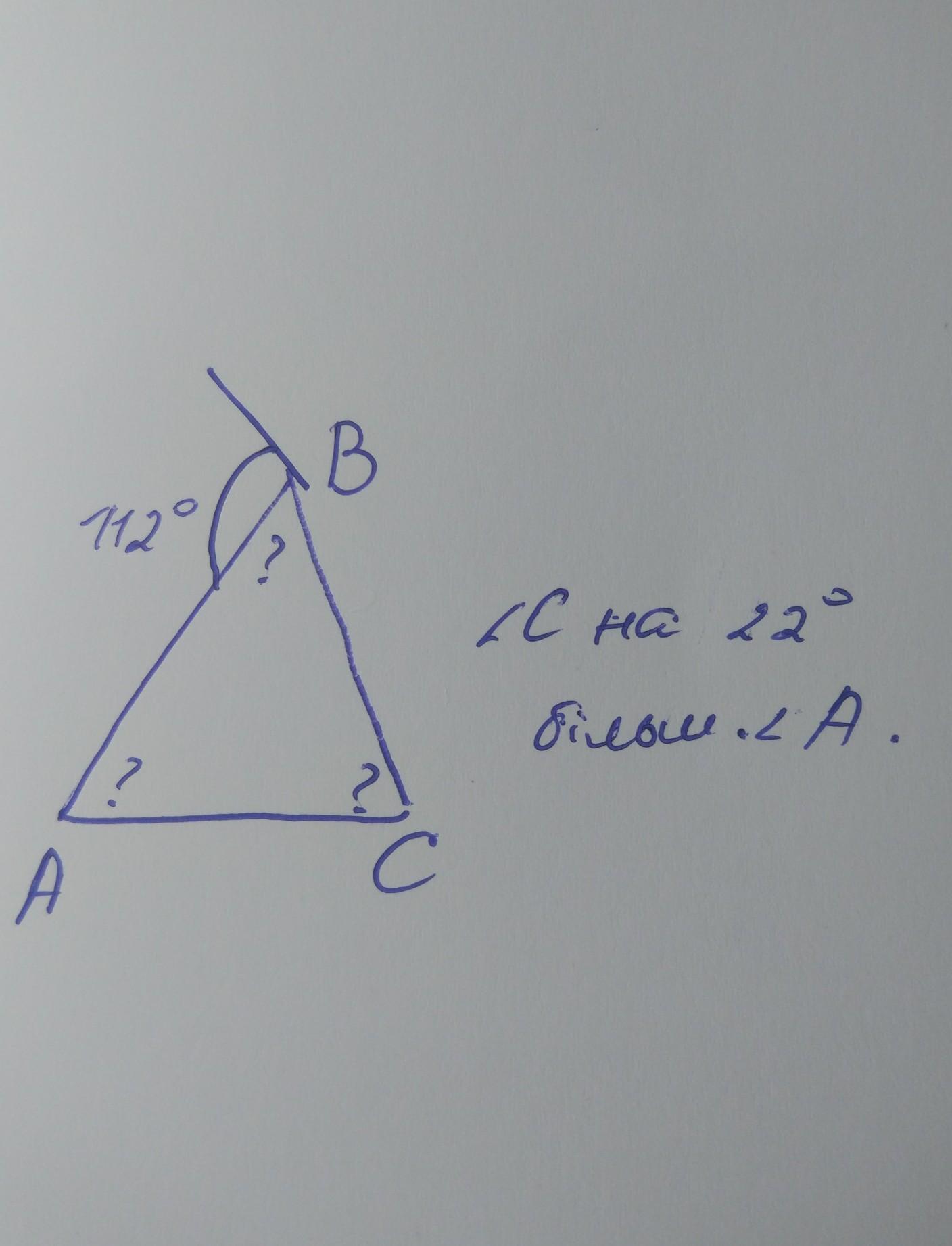 Нехай ∠А = х° , тоді ∠С = х + 22° .