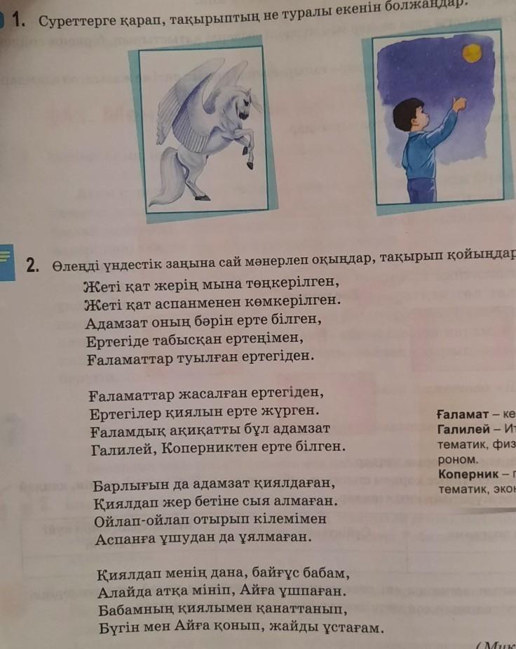 3. Оқылым мәтіні мен 1-тапсырмадағы суреттерді байланыстырып, сөйлем құраңдар. Зат есімдерді көрсетіңдер.