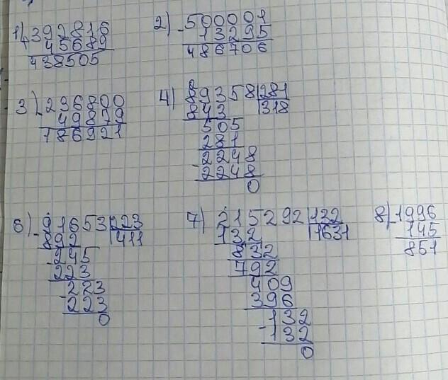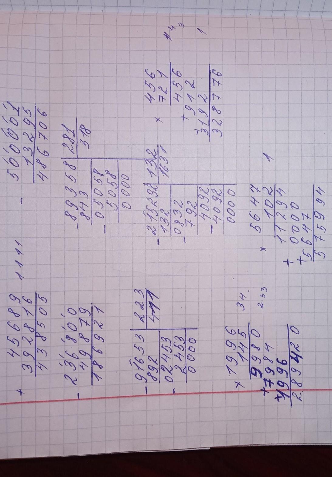 решения примеров. 45 689 + 392 816 500 001 — 13 295 236 800 – 49 879 89 358 : 281 91 653 : 223 215 292 : 132 456.721 1996 - 145 5647 . 102 Можно Столбиком плиссссссс