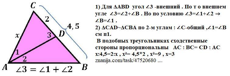 2) ΔCAD~ΔCBA по 2-м углам : ∠С-общий ,∠1=∠В см п1.