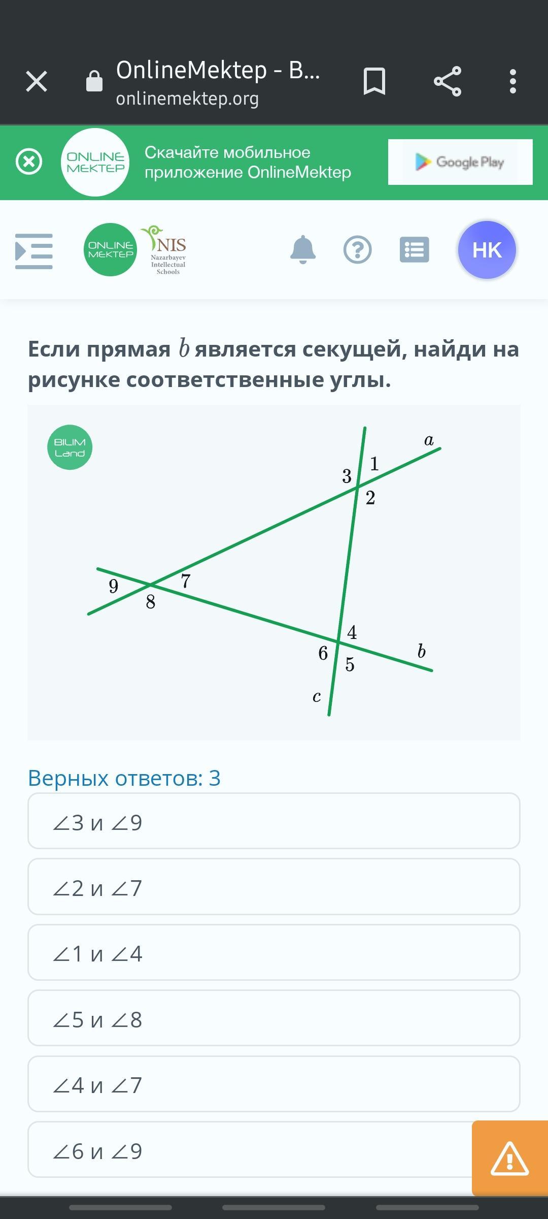 Если прямая b является секущей, найди на рисунке соответственные углы.