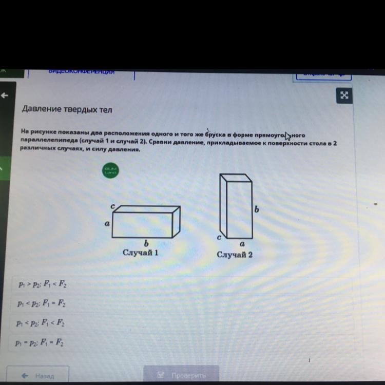 параллелепипеда (случай 1 и случай 2). Сравни давление, прикладываемое к поверхности стола в 2