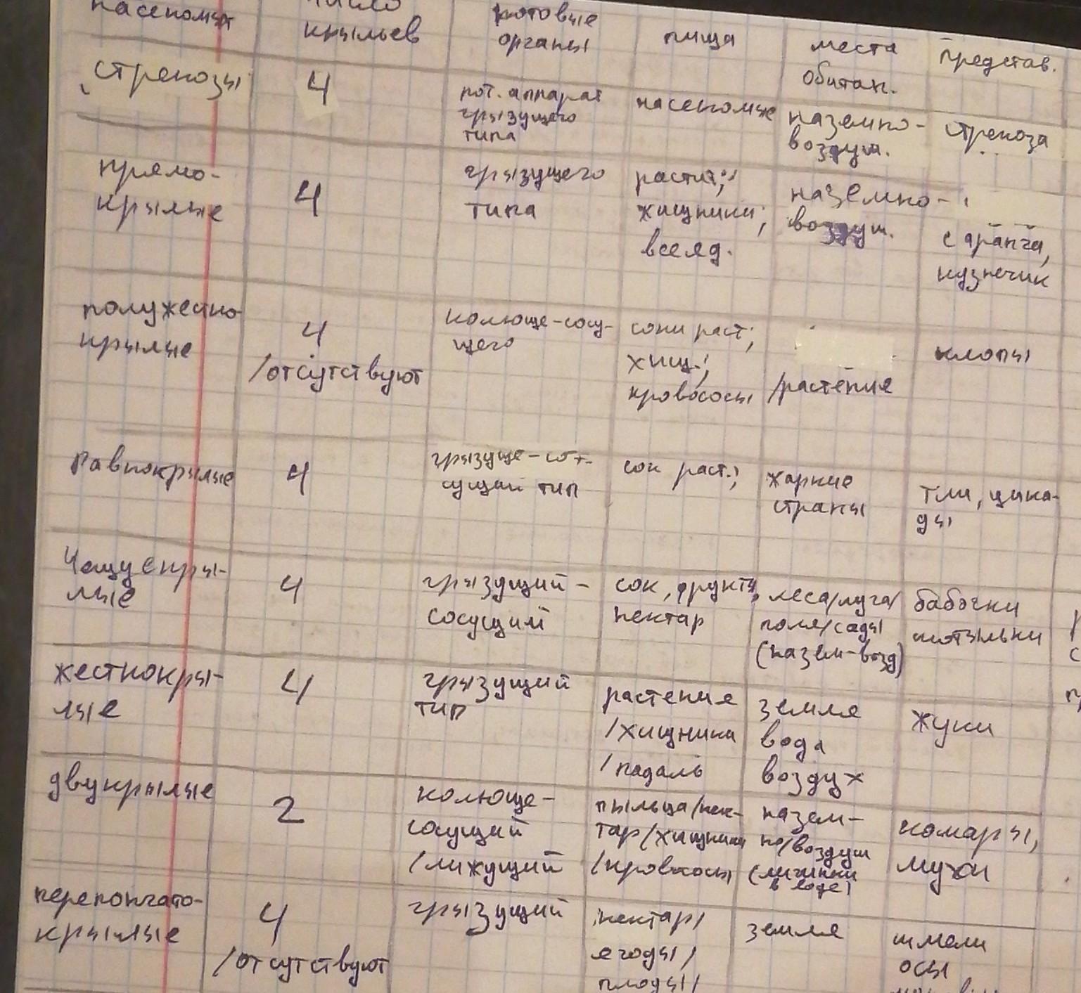 Таблица по биологии 7 класс насекомые. Колонки:отряд, представители, ротовой аппарат, тип развития, особенности строения. ДАЮ 70 БАЛЛОВ