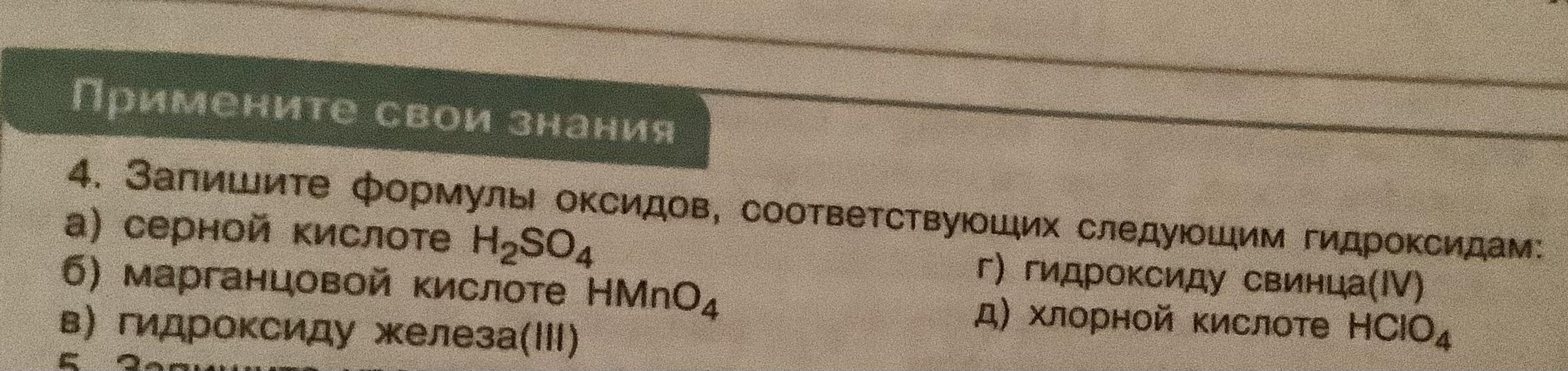 a) SO3; б) Mn2O7; в) Fe2O3; г) PbO2; д) Cl2O7