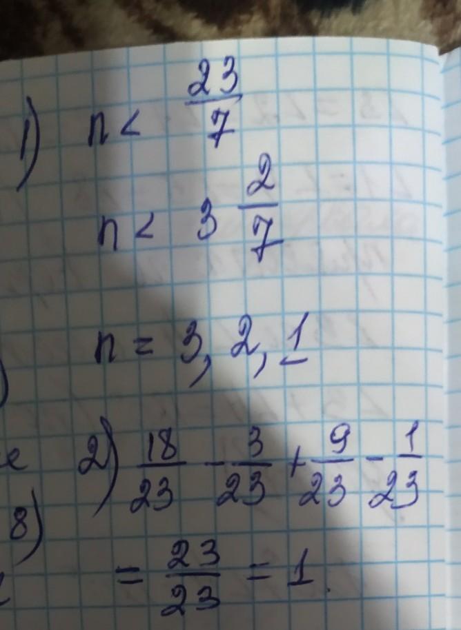 1) укажите все натуральные числа какие можно подставить взамену n, чтоб неправильность n <23/7 была правильная