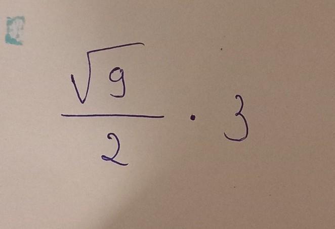 \frac{\sqrt{9} }{2}*3 = \frac{3}{2}*3 = \frac{9}{2}