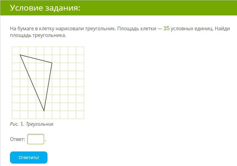 Помогите!! На бумаге в клетку нарисовали треугольник. площадь клетки 25 условных единиц. Найди площадь треугольника