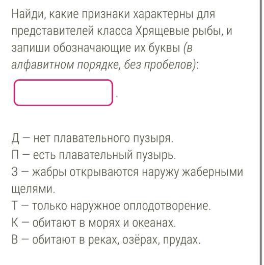 1нет плав.пузыря,3 жабры и тд.,6обит. в реках и озёрах