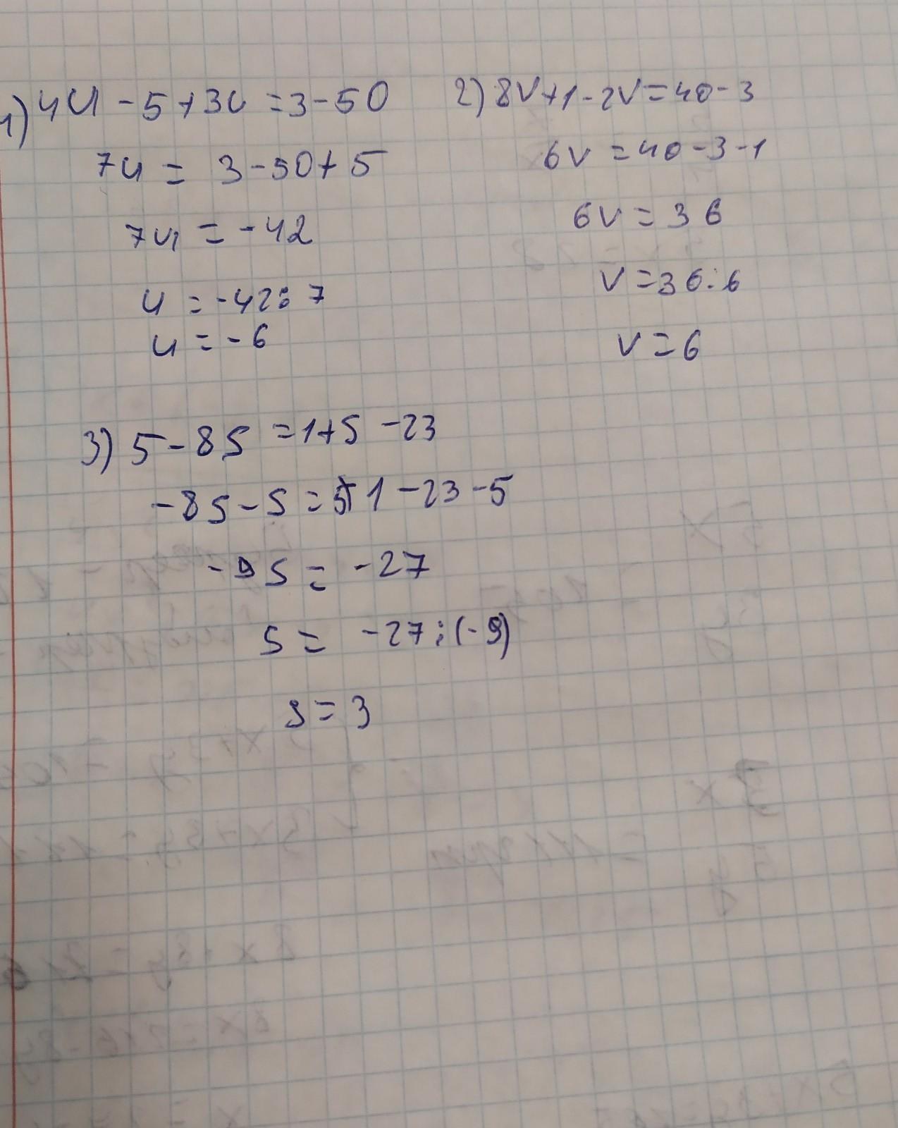 1) 4u -5 +3u=3-50