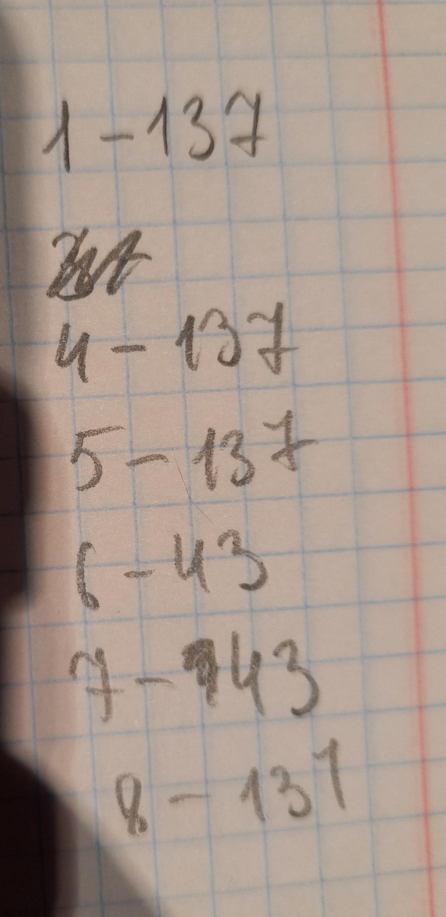 Угол 4=180°-43°=137° (по свойству смежных углов 4 и 3)