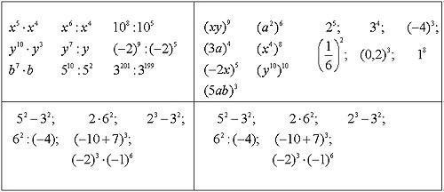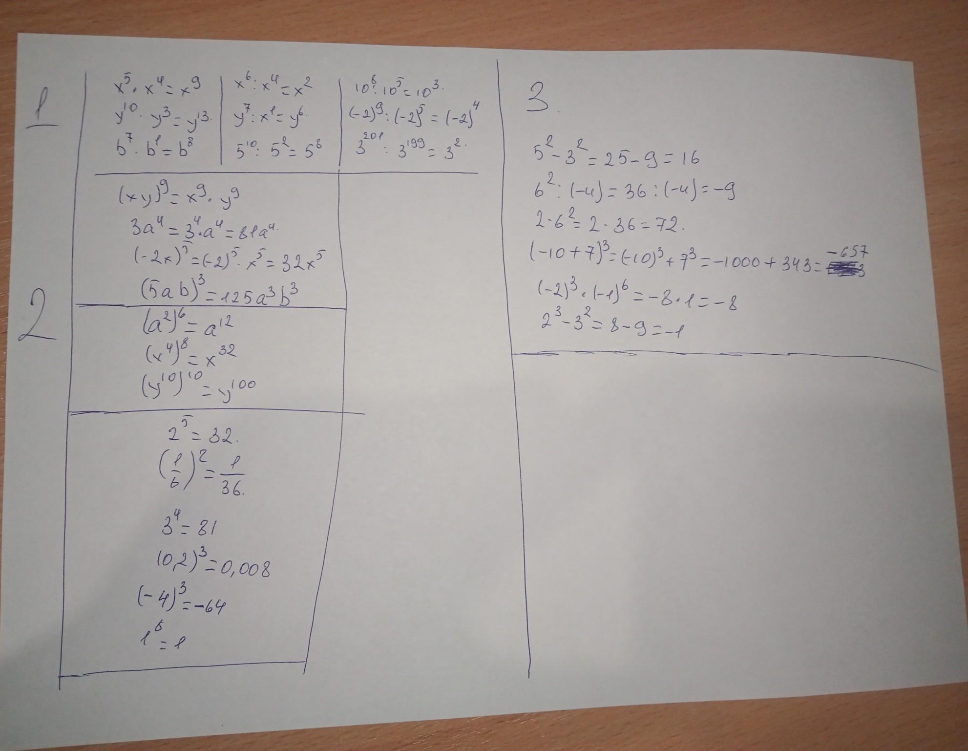 y^10*y^3=y^13 y^7:y=y^6 (-2)^9:(-2)^5=(-2)^4=16