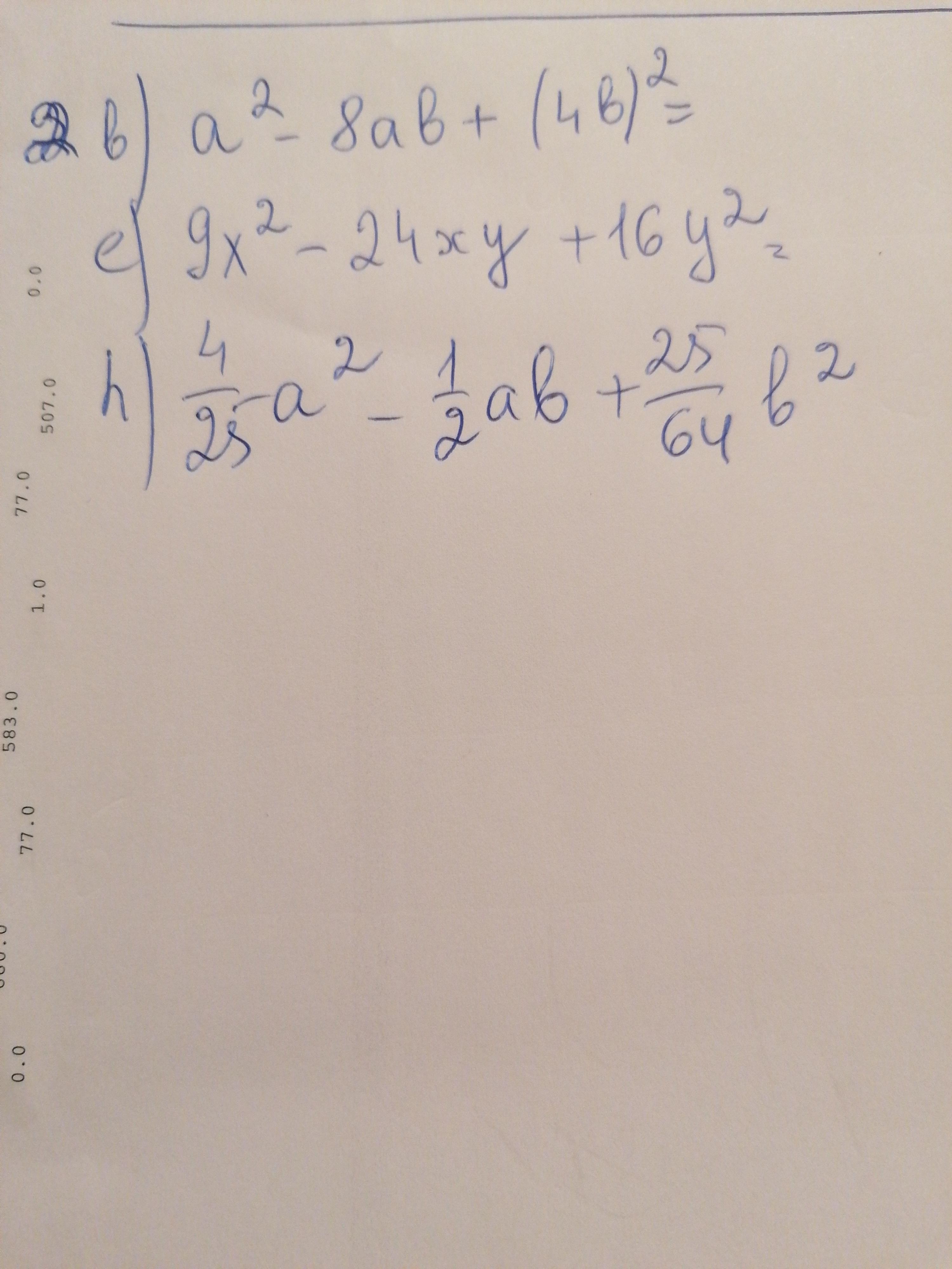 h)4/25а²-1/2ав+25/64в²=(2/5a-5/8в)²
