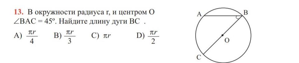 Длина окружности P=2πr , значит половина ВС=2πr/2=P=πr