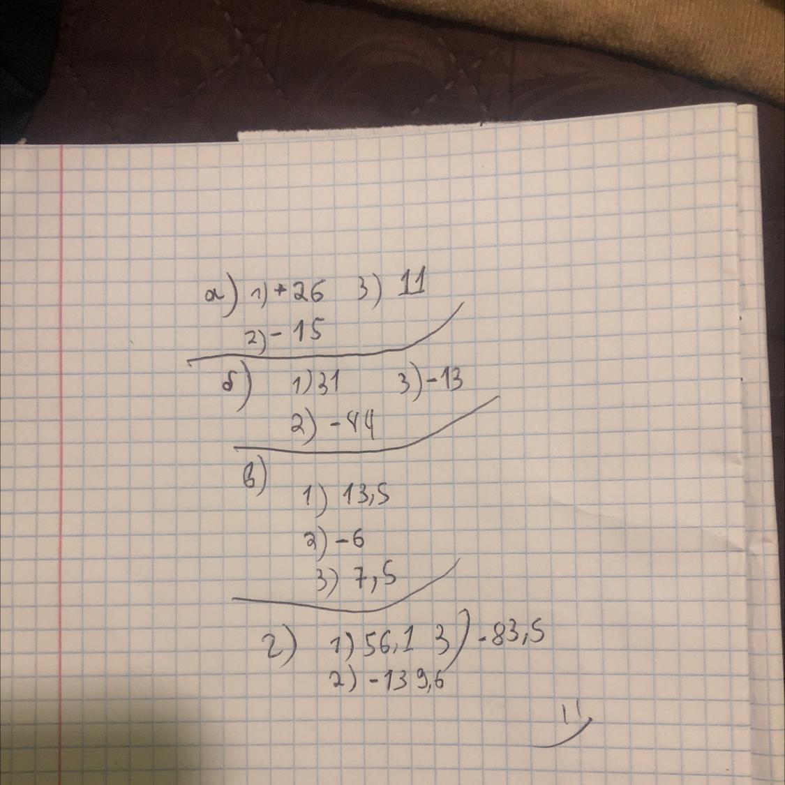 в)8,2+(-4,3)+(-1,7)+5,3=13,5-6=7,5