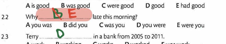 Подскажите, почему в задании 2.2 вариант ответа «Е», а не «В»? Разве этот вопрос не в Present Simple? В Present Simple используется did, а не was/were ведь или я что-то путаю?