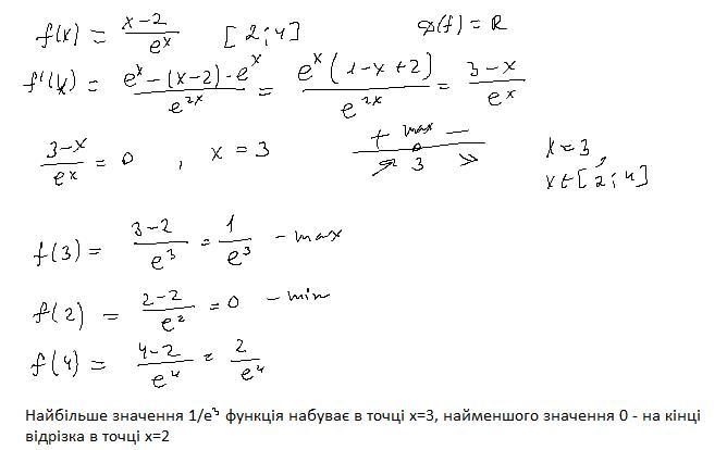 Знаходимо значення функції в точці екстремуму та на кінцях відрізку