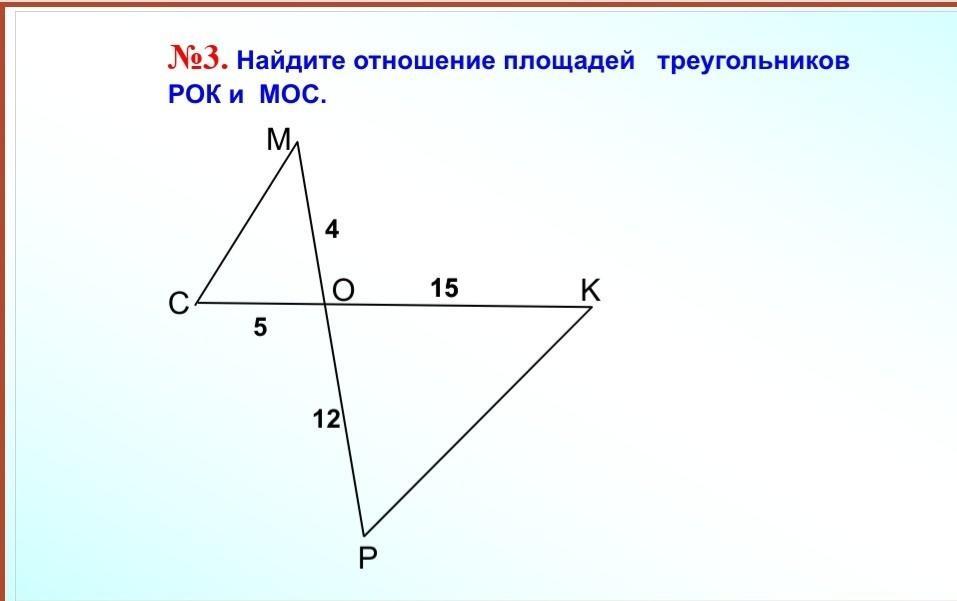 Докажем сначала, что они подобные. Углы MOC и KOP вертикальные, следственно, они равны.