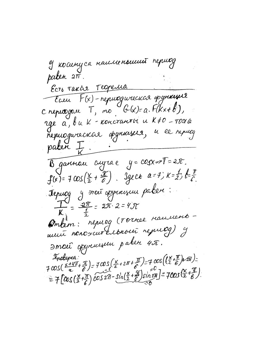 Надеюсь, понятно написала. Будут вопросы - спрашивай. Вообще-то период функции лучше всего определять по этой теореме