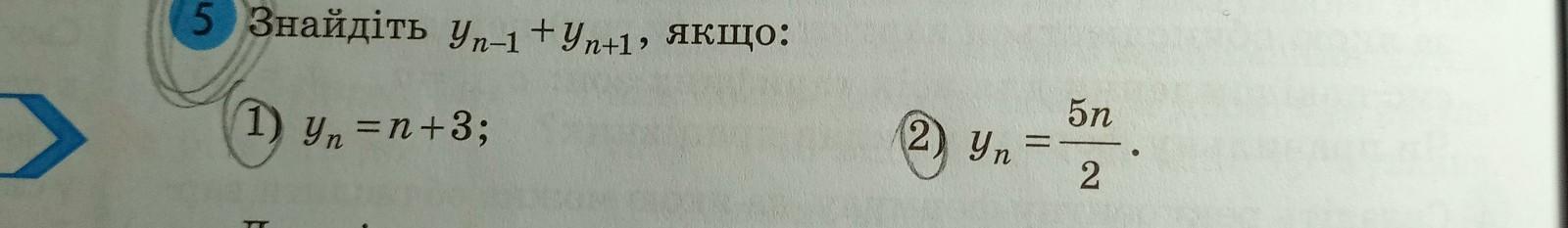 2) уₙ = 5n/2 ; yₙ₋₁ + yₙ₊₁ = 5( n - 1 )/2 +5( n +1 )/2 = [ 5( n - 1) +5( n +1 )]/2 =