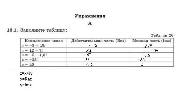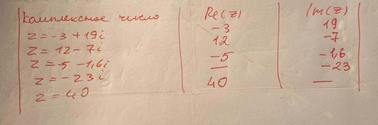 Ошибка. Число i- мнимая единица, она не входит в мнимую часть. Во втором столбике не должно быть буквы i. И вместо прочерков должен стоять ноль.