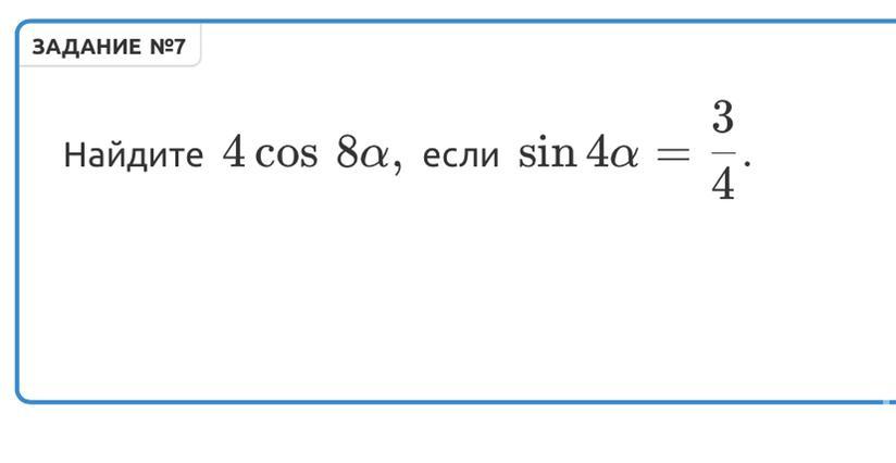4 \cos8 \alpha   = 4(1 -  \sin ^{2} 4 \alpha  ) =  \\  = 4(1 -(  { \frac{3}{4} })^{2} ) = 4(1 -  \frac{9}{16} ) =  \\  = 4( \frac{16 - 9}{16} ) =  \frac{7}{4}  =1 \frac{3}{4}  = 1.75