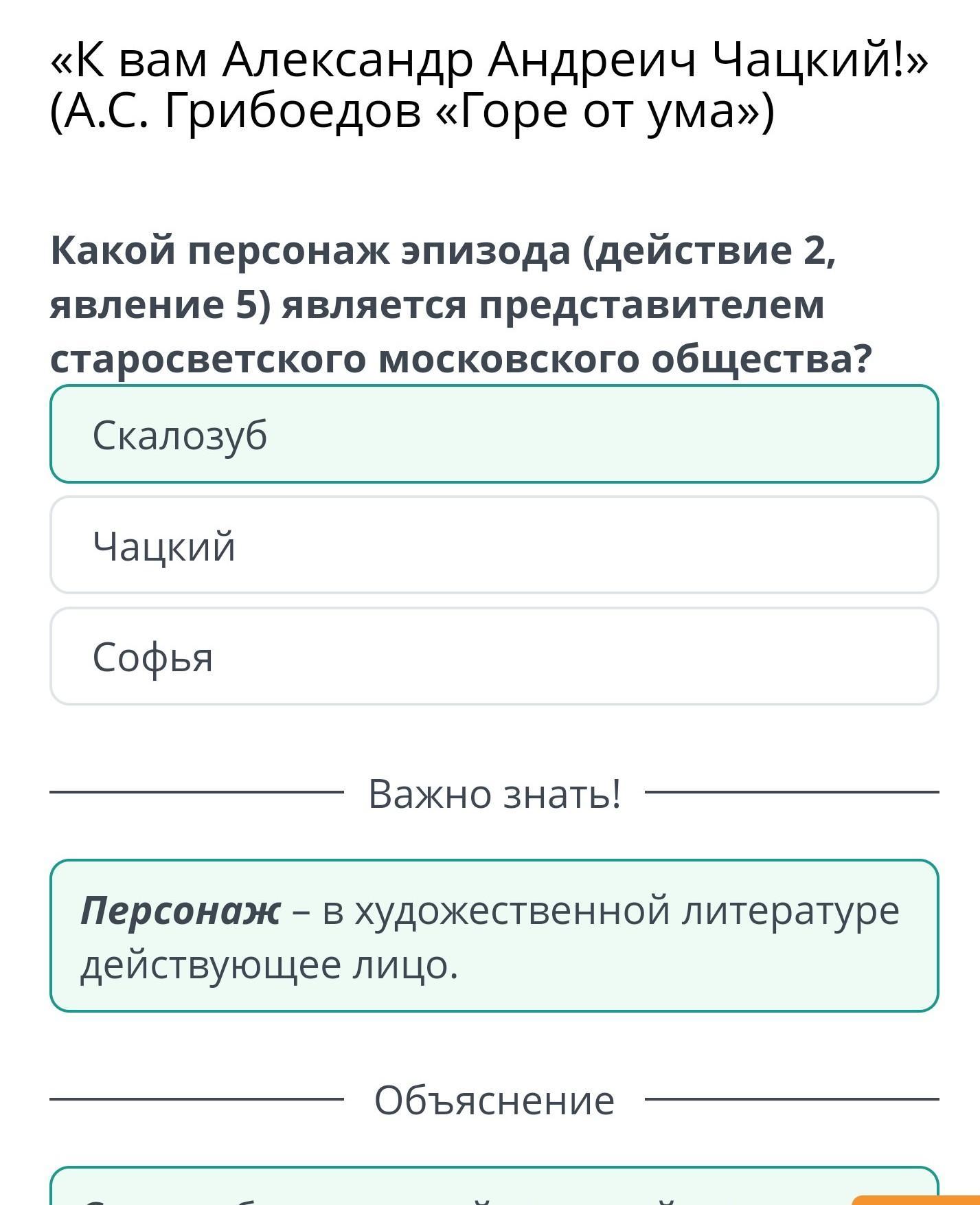 Какой персонаж эпизода (действие 2, явление 5) является представителем старосветского московского общества? Проверить