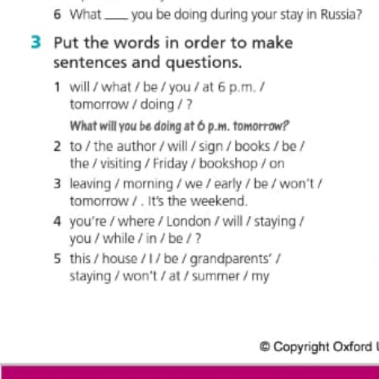 1. What will you be doing at 6 p.m tomorrow?