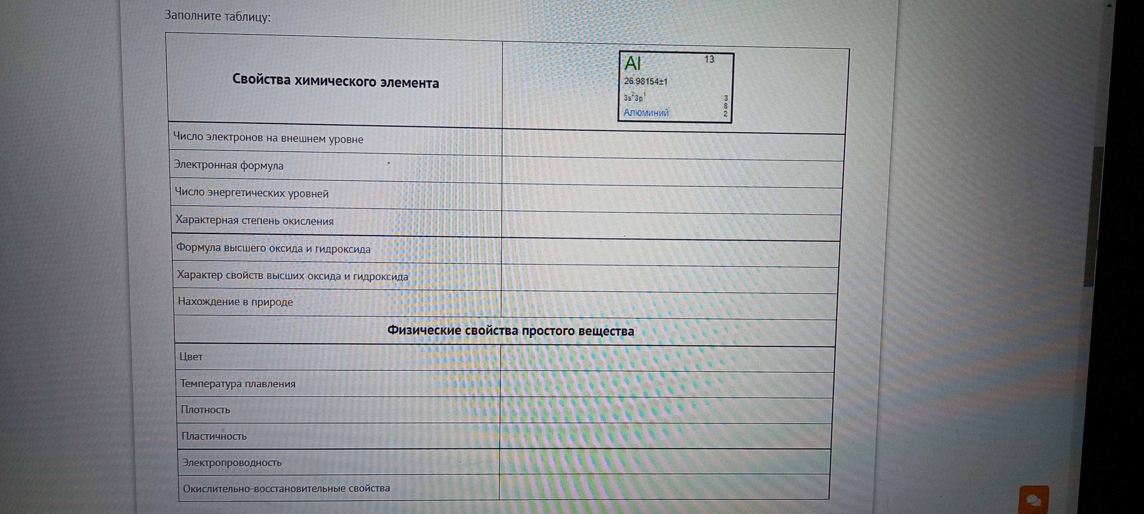- Электронная формула: 1s22s22p63s23p1