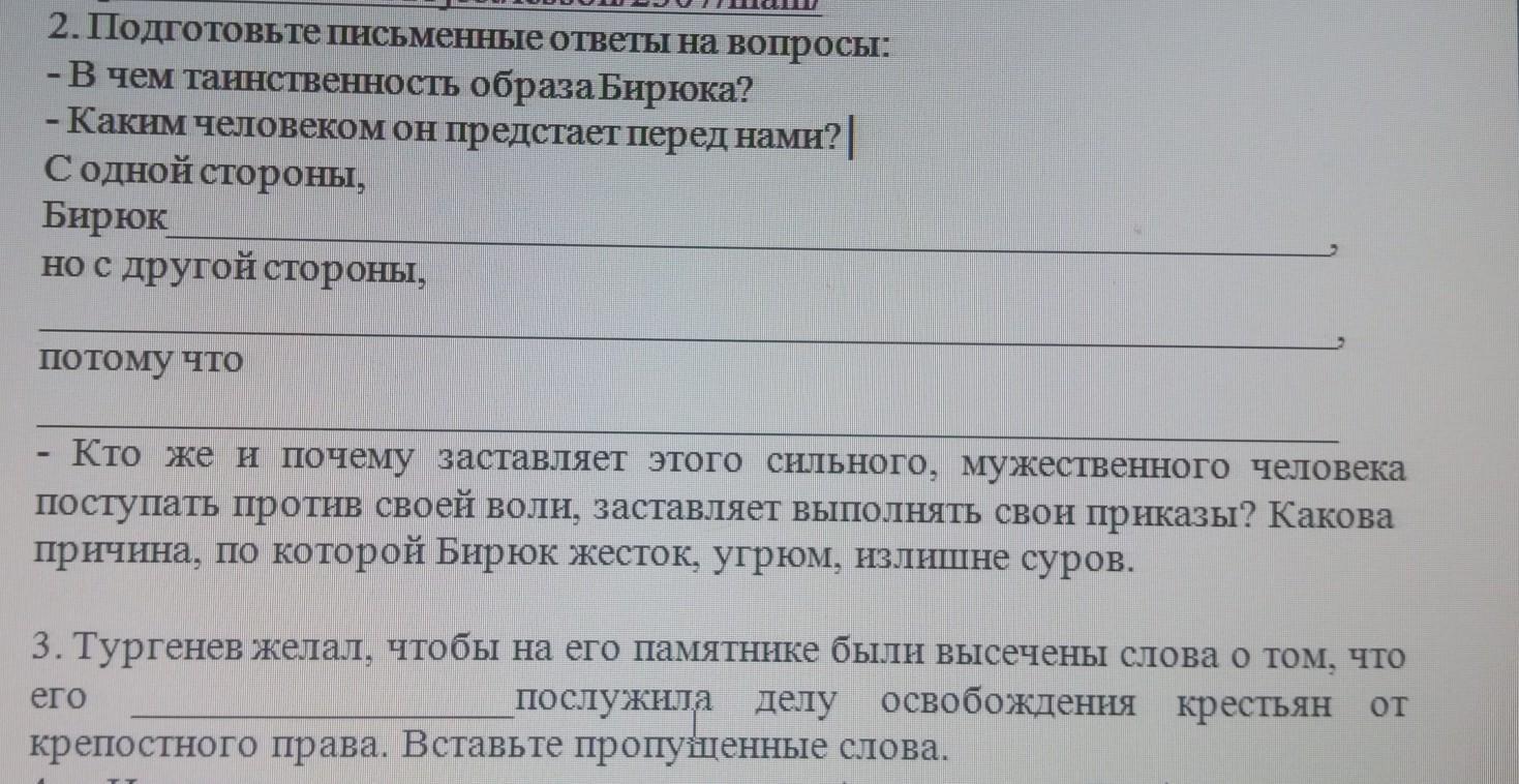 По моему , нужно ответить так—“С одной стороны , Бирюк дружелюбный и снисходительный , но с другой стороны , он строгий и раздражительный , внушающий ужас лесорубам человек , потому , что у него когда—то ушла жена , оставив его с дочкой в бедности , поэтому он стал таким “злым”。”。