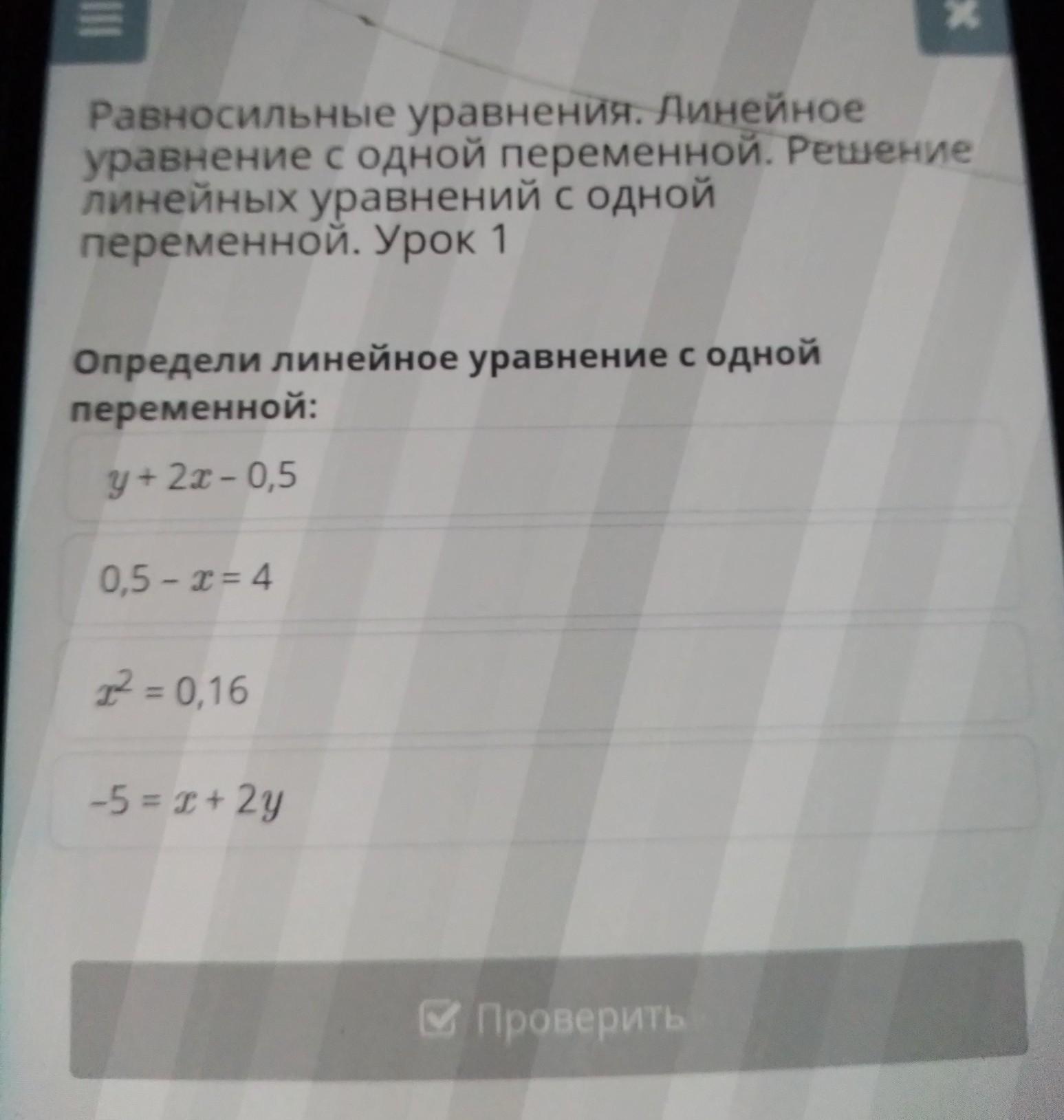 Равносильные уравнения. Линейное уравнение с одной переменной. Решение линейных уравнений с одной переменной. Урок 1