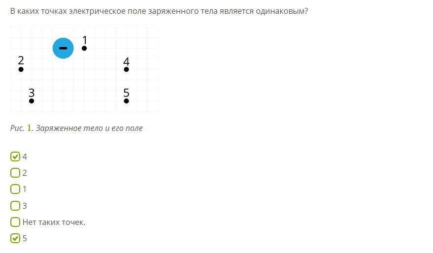 2) Расстояние считаем по теореме Пифагора (по клеточкам). Или хотя бы линейкой. Таких точек (на одном расстоянии от заряда) нет.