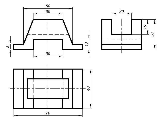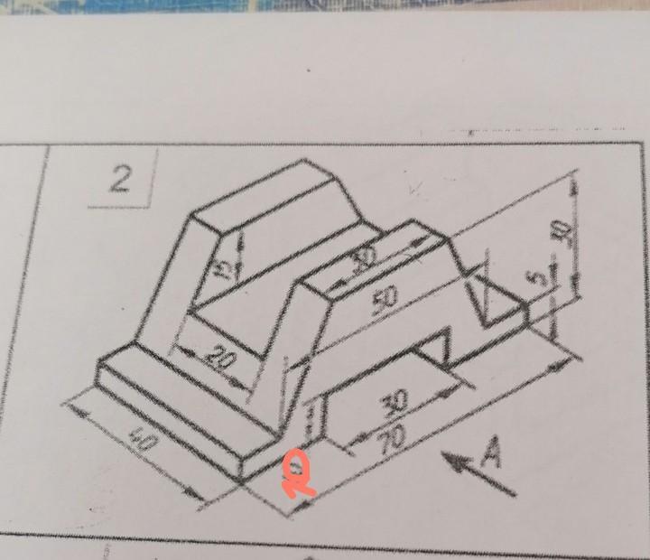 Построить три вида модели (сбоку сверху, слева) . Главный вид взять по стрелке А. Проставить размеры