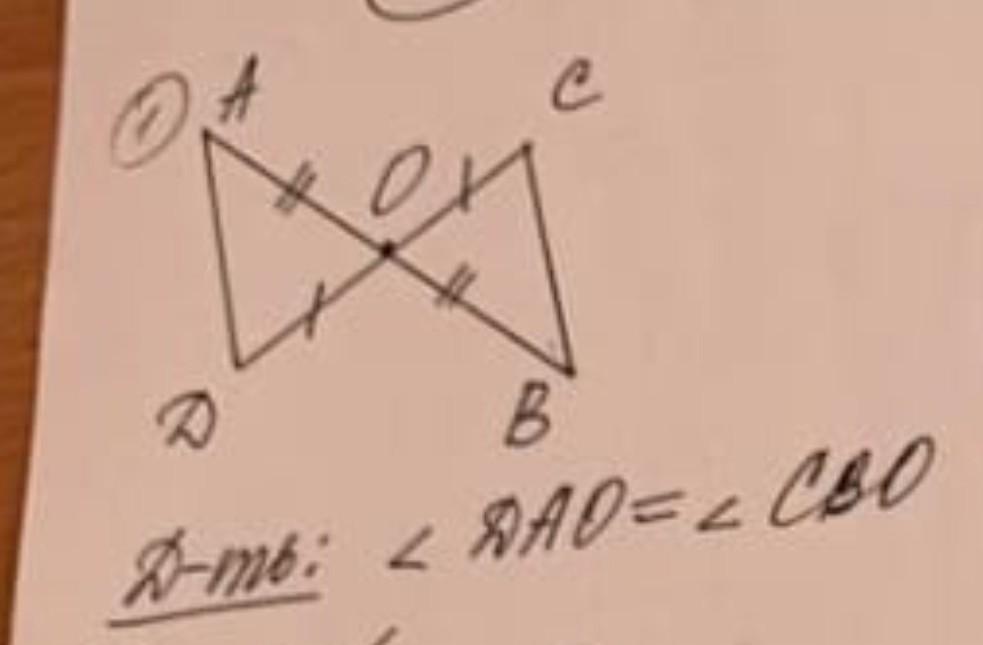 ΔАОД=ΔСОВ по двум сторонам (АО=ОВ, ДО=ОС по условию) и углу между ними (∠О вертикальный);