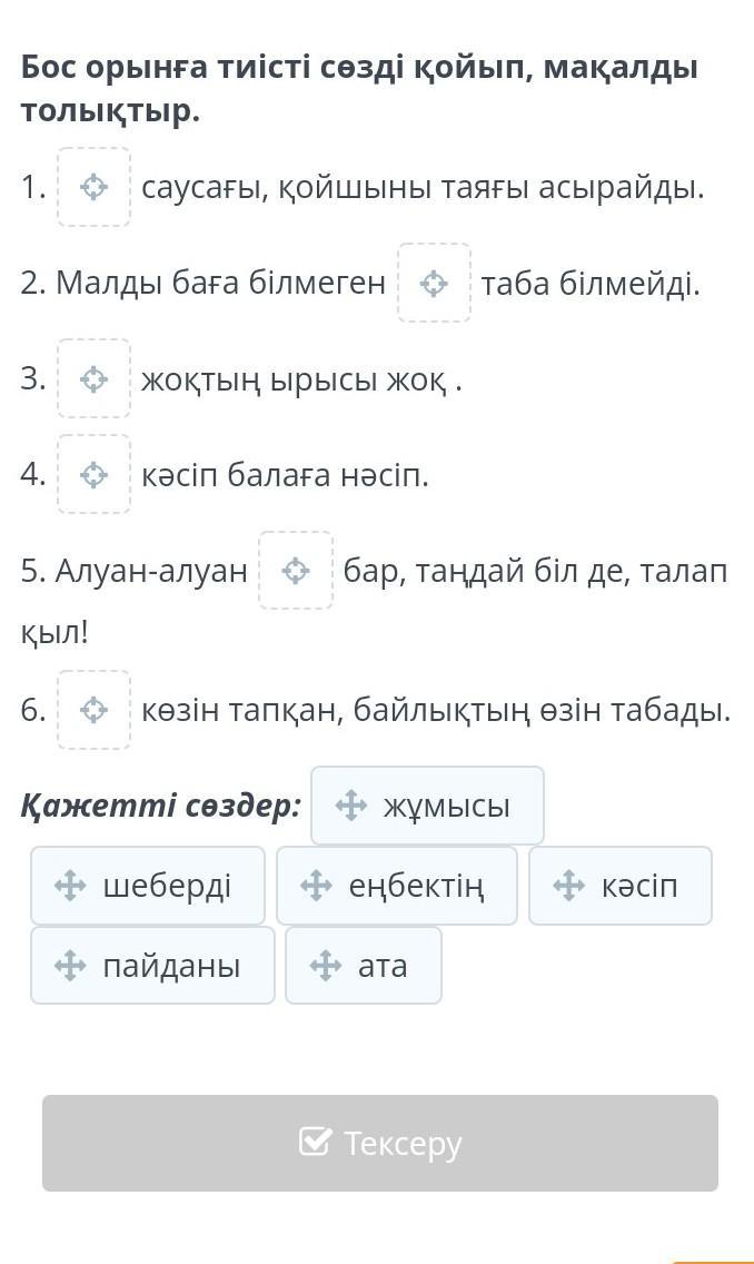 мамандық деген не? Бос орынға тиісті сөзді қойып, мақалды толықтыр.