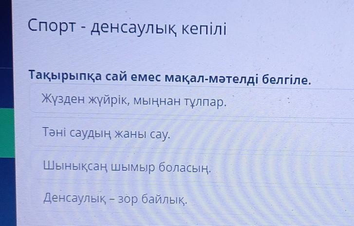 Тақырыпқа сай емес мақал-мәтелді белгіле.