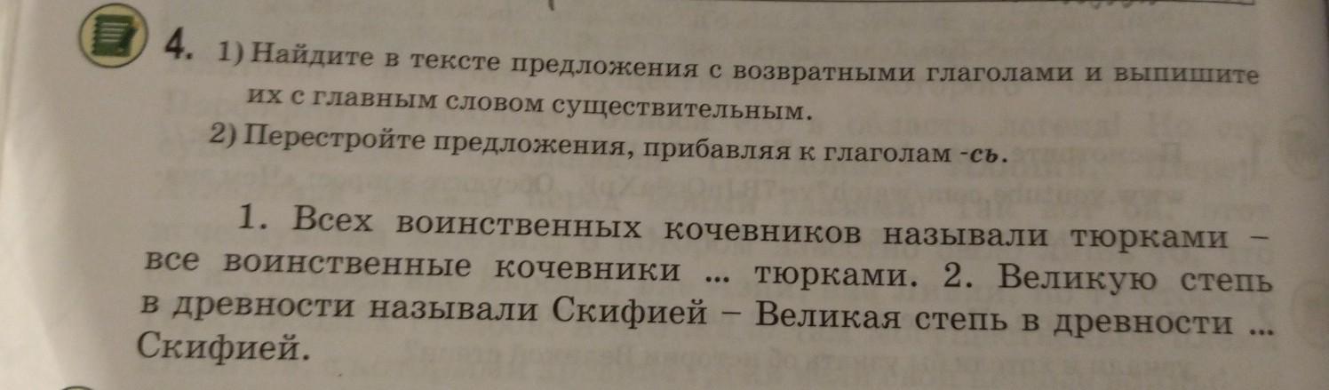 1) Найдите в тексте предложения с возвратными глаголами и выпишите их с главным словом существительным.