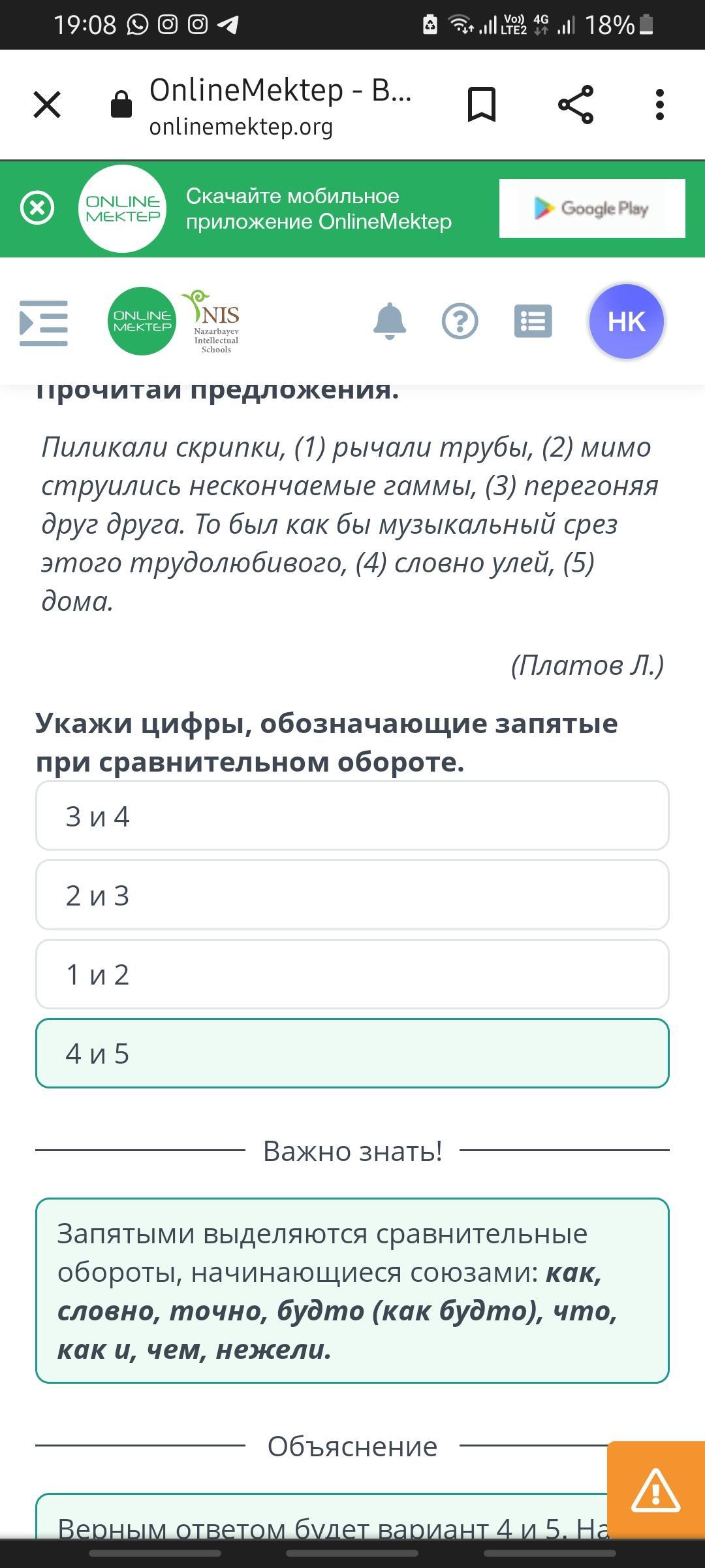 Прочитай предложения. Пиликали скрипки, (1) рычали трубы, (2) мимо струились нескончаемые гаммы, (3) перегоняя друг друга. То был как бы музыкальный срез этого трудолюбивого, (4) словно улей, (5) дома, (Платов Л.) Укажи цифры, обозначающие запятые при сравнительном обороте. 3 и 4 2 и 3 1 и 2 4 и 5