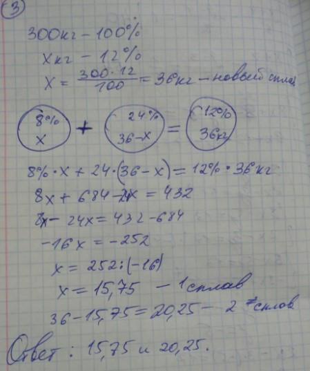 Имеется два сплава меди и цинка. Один сплав содержит 8%, а другой 24% цинка. Сколько килограммов каждого сплава надо взять чтобы получить сплав массой 300 кг содержащий 12 % цинка?