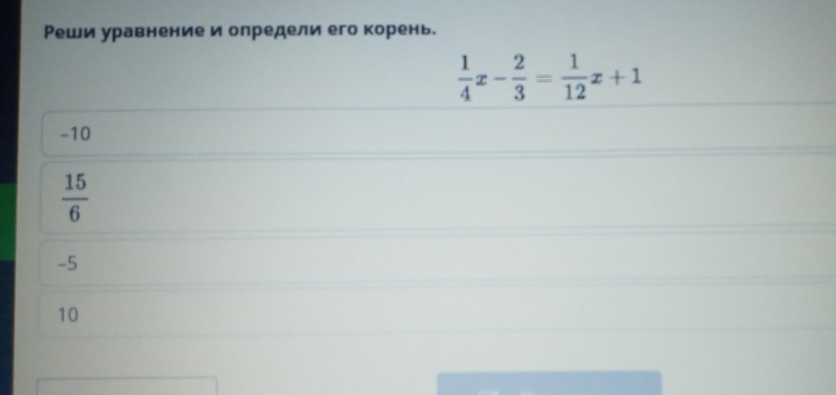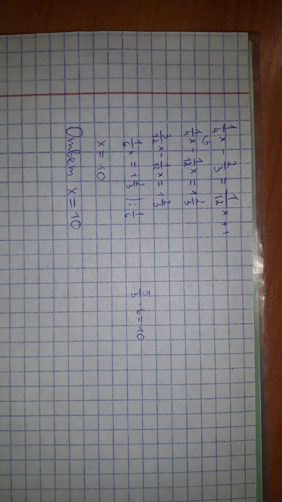 Реши уравнение и определи его корень 1/4x -2/3=1/12x+1