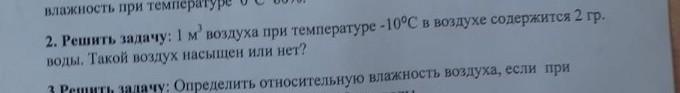 Если при 10 градусах Цельсия 1 кубометр воздуха вмещает в себя до 9.4 г воды (при 100% влажности), значит нет, 6 г - это ненасыщенный воздух, 6/9.4 = 64% влажность. Ответ: 1 м ^3 воздуха имеющий температуру+10 С содержит 6 г воды - это воздух не на