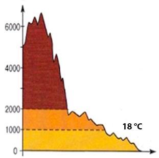 Укажіть висоту, на якій температура повітря становить 0 °С. Біля підніжжя (0 м) температура 18°С.