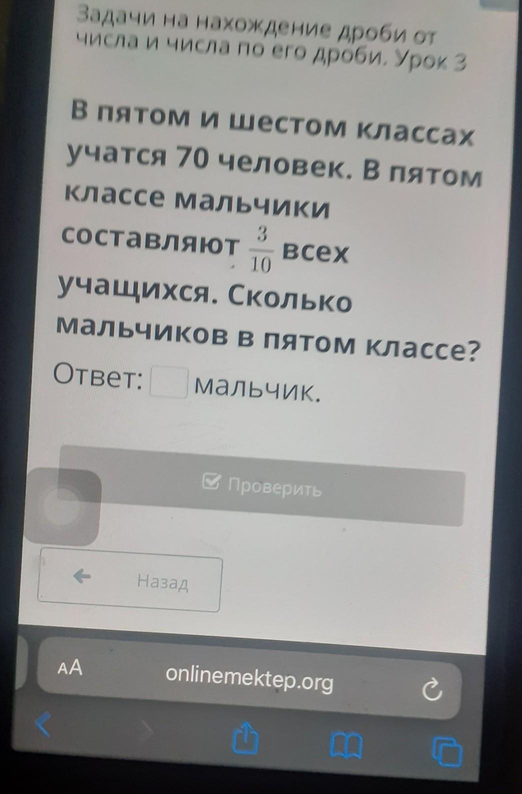 в пятом и шестом классах учится 70 человек в пятом классе мальчики составляют 310 всех учащихся сколько мальчиков в пятом классе.ПЖ СРОЧНО
