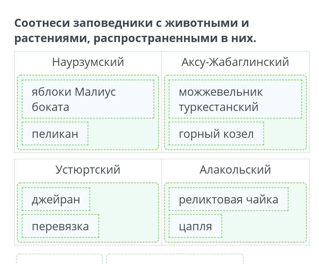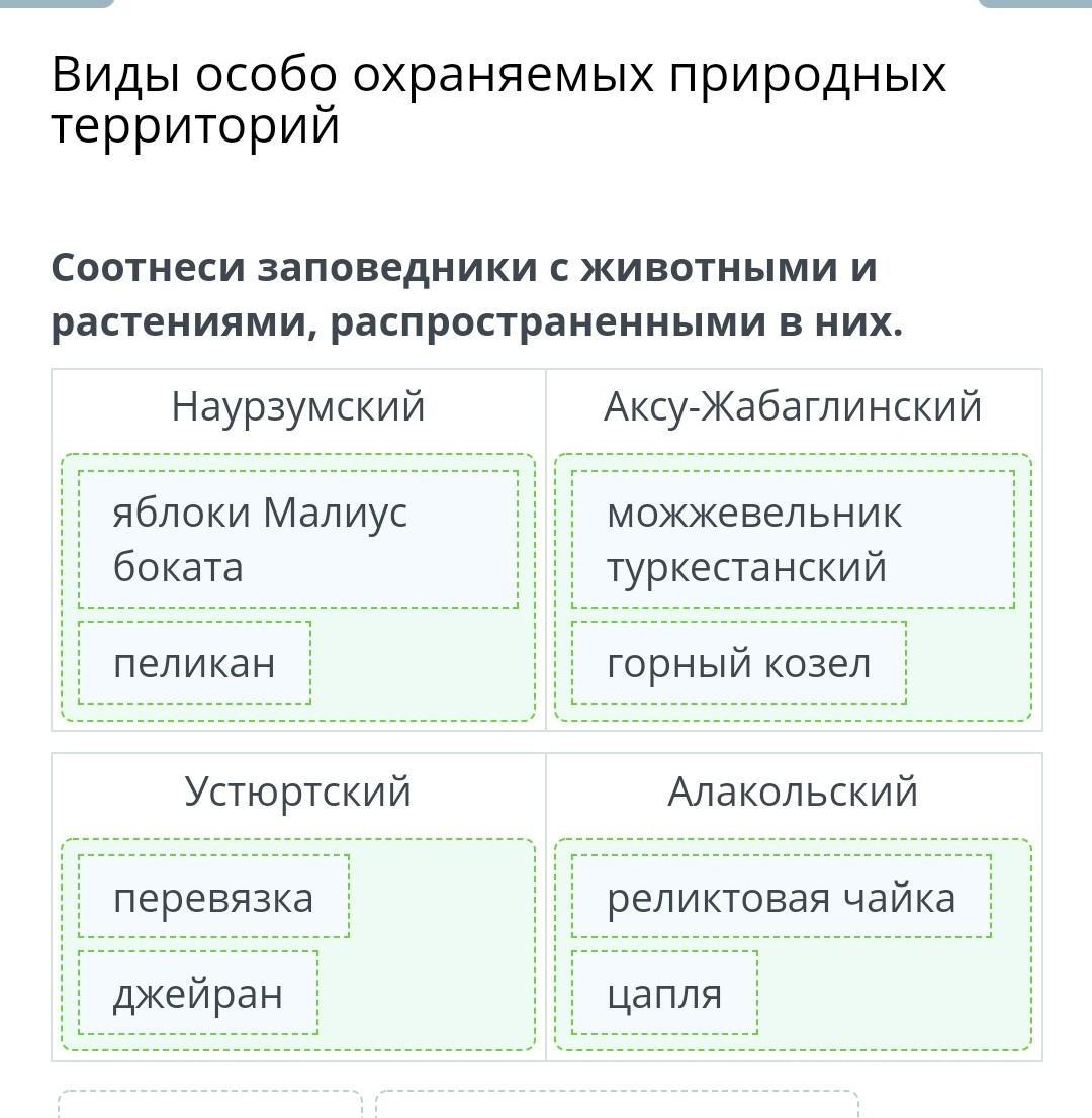 Соотнеси заповедники с животными и растениями, распространенными в них.