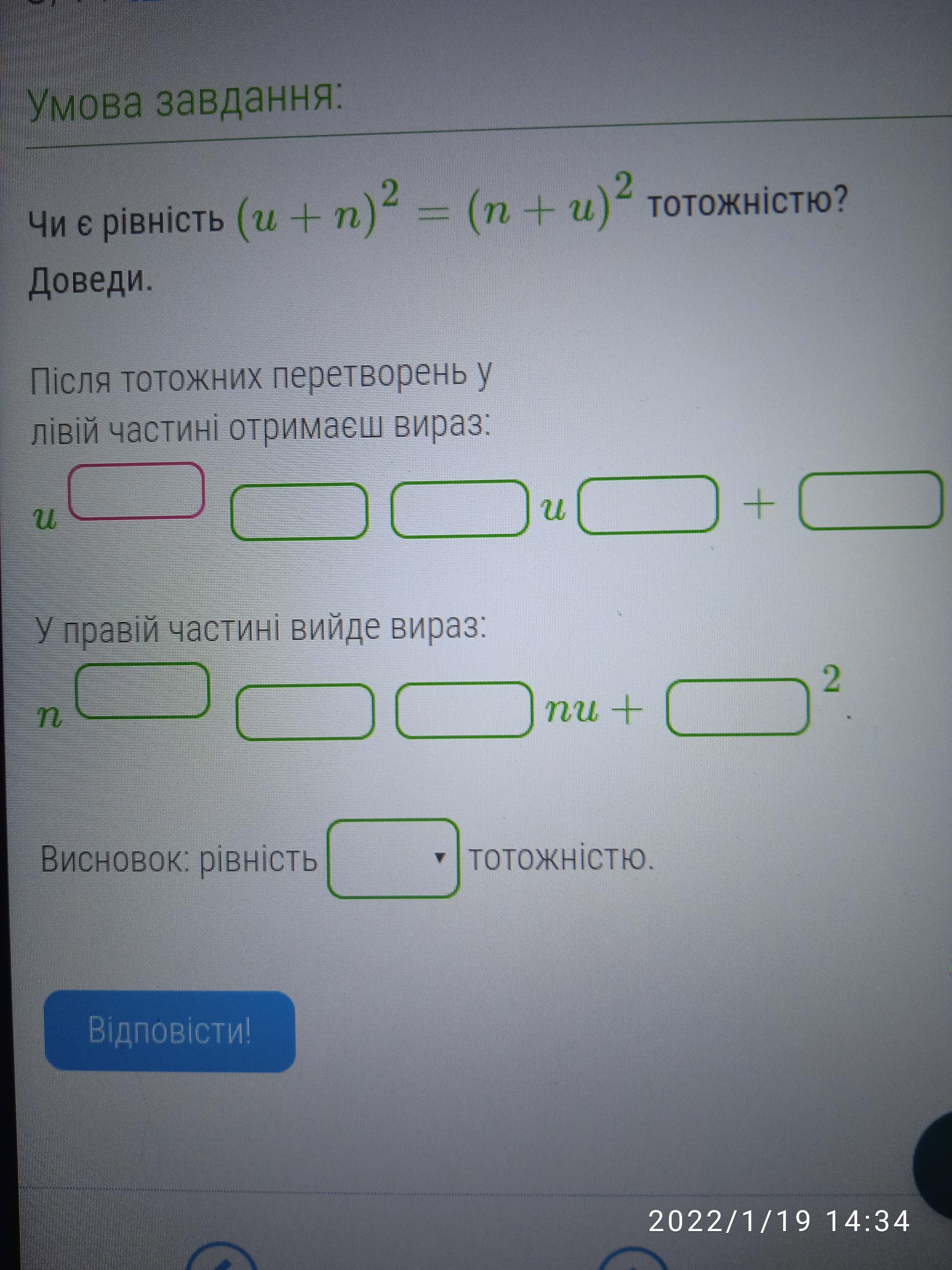 (n + u )^2 = n^2 + 2nu + u^2 = u^2 + 2un + n^2(формула квадрата суми)