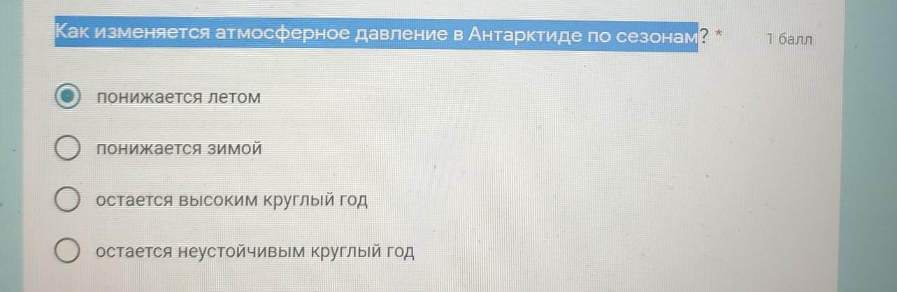 как изменяется атмосферное давление в Антарктиде по сезонам?